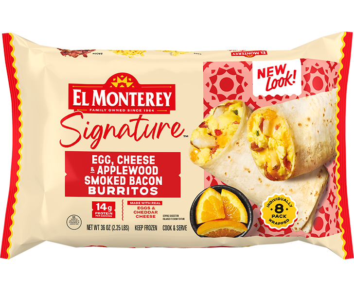 When bacon’s involved, expectations go way up. Lucky for you, El Monterey® Signature Egg, Cheese & Applewood Smoked Bacon Burritos deliver the flavors you crave in a big way. Crafted with real scrambled eggs, stringy cheddar cheese, and savory bacon in a fresh baked tortilla… man, I’m getting hungry just from typing this… anyway.