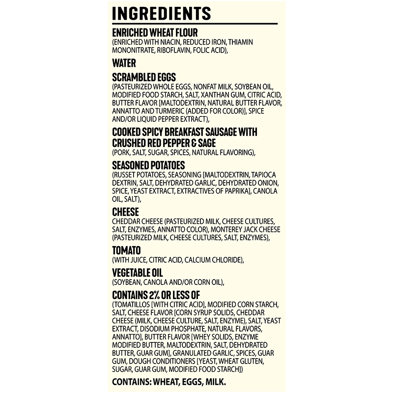MMMM, SAUSAGE. Made with real eggs, savory sausage, cheese, and potatoes.