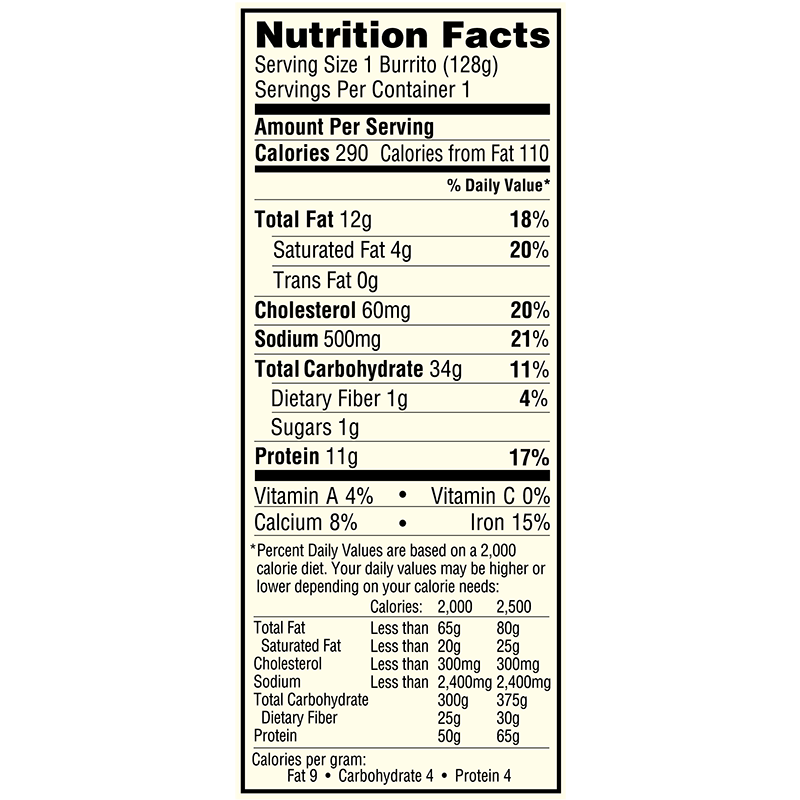 FROZEN BREAKFAST FIESTA. Individually-wrapped frozen breakfast burritos with real eggs.