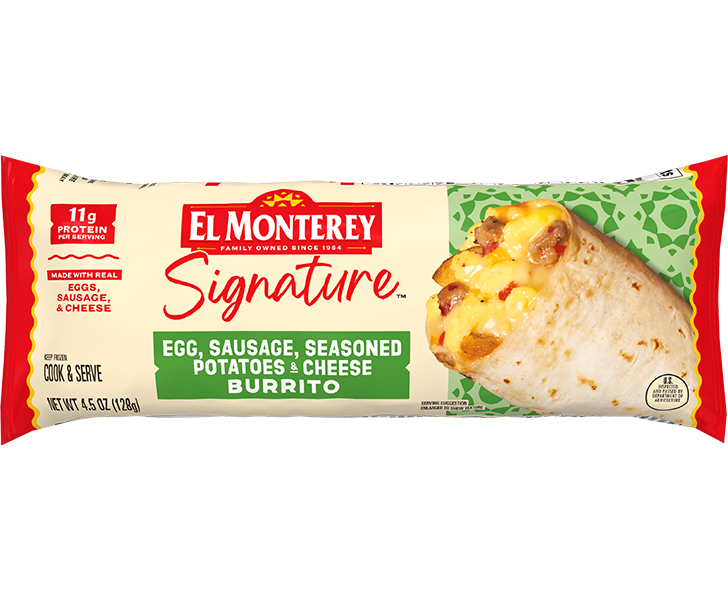 You could wing breakfast… or you could let these burritos do their thing. El Monterey® Signature Egg, Sausage, Seasoned Potatoes & Cheese Burritos are filled with real scrambled eggs, hearty sausage, and seasoned potatoes in every bite. And that tortilla? It’s freshly baked for premium flavor (and strong enough to hold in all those ingredients).