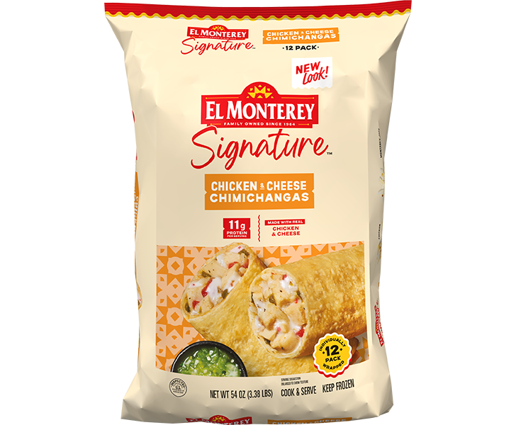 In a world of beef this and steak that, reach for the wrap that says, “You know what? Not today, cow.” Enter the El Monterey® Signature Chicken & Cheese Chimichangas. Packed with premium white meat chicken and shredded cheese, all wrapped in a lightly fried, extra crispy tortilla.