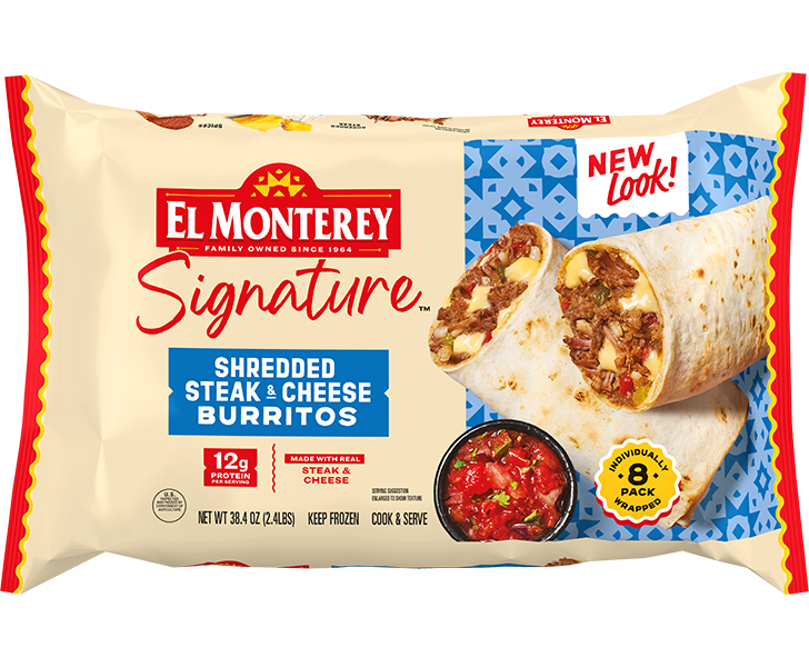 Beef? Around here, we use STEAK. Introducing the El Monterey® Signature Shredded Steak & Cheese Burritos. Packed with tender shredded steak and melty cheddar cheese, it’ll have you wondering if you’ve really been living up until now.
