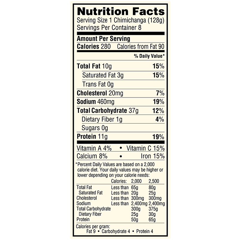 Nutritional Facts for Chicken & Cheese Chimichangas