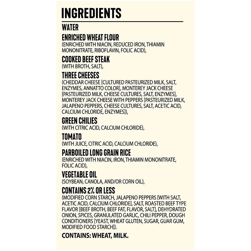 BIG BURRITO ENERGY. Made with real shredded steak and three cheeses.