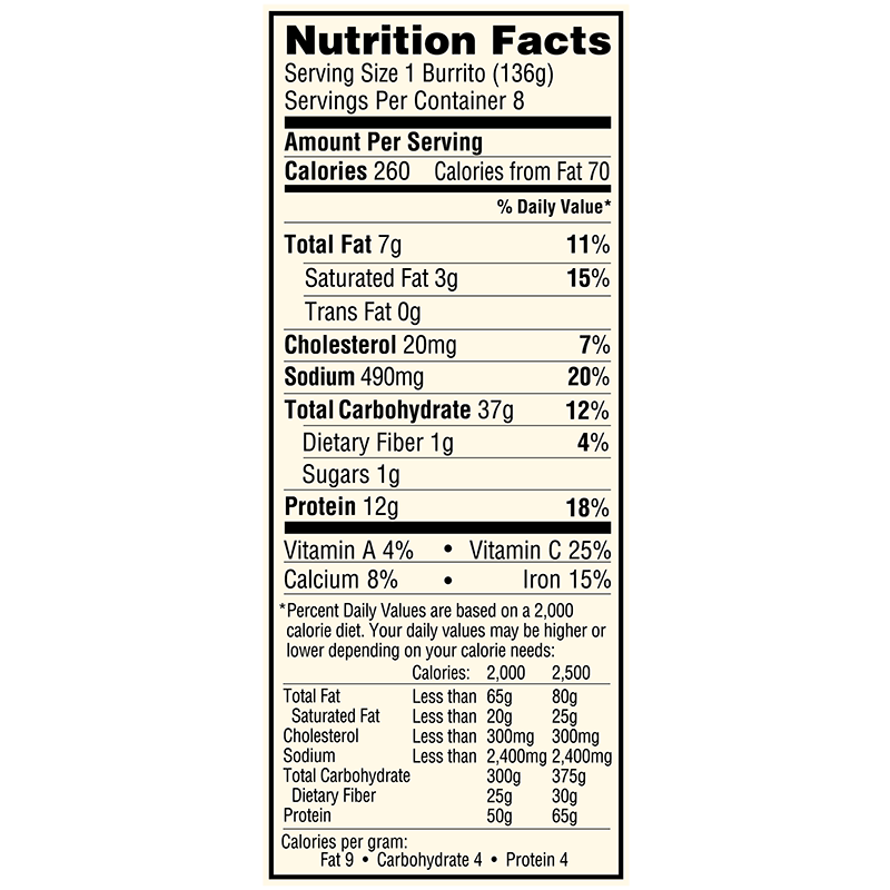 Nutritional Facts for Shredded Steak & Cheese Burritos