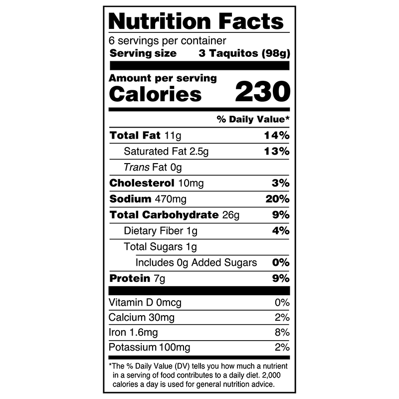 Nutritional Facts for Más Bold Buffalo-Style Chicken Taquitos