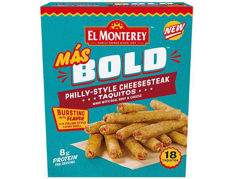 El Monterey® Más Bold Philly-Style Cheesesteak Taquitos serve up the bold , beefy, cheesy flavor you’d expect from Philadelphia’s iconic sandwich but wrapped in crispy tortillas.