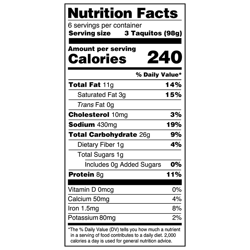 FROZEN SNACK FIESTA. 18 crispy frozen taquitos with real beef and cheese