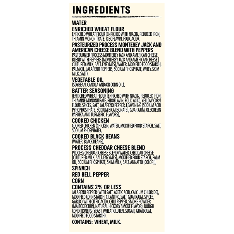 SOUTHWESTERN FLAVOR. Made with real chicken, black beans, two cheeses, and authentic spices.