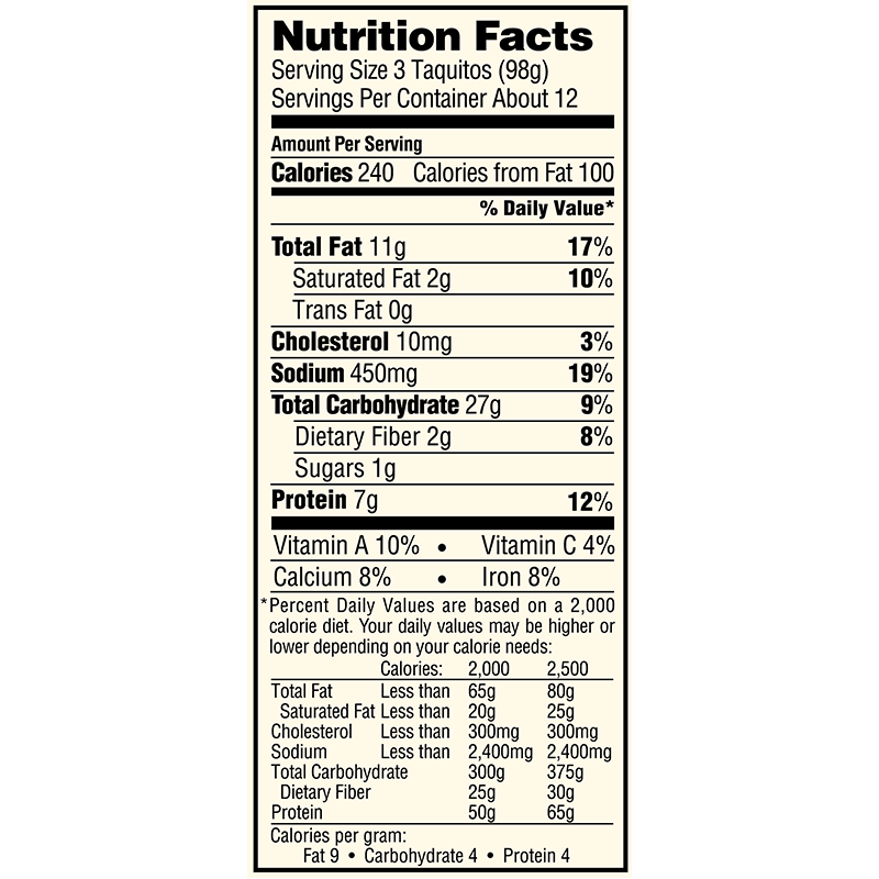 Nutritional Facts for Extra Crunchy Southwest Chicken Taquitos